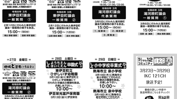 3/9-3/15までの番組スケジュール2026.03.07