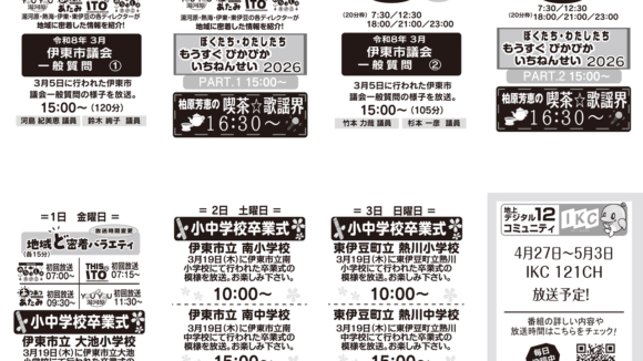 3/27(金)熱海エリア・湯河原エリア・伊東エリア・東伊豆エリア 一部テレビサービス停止のお知らせ2026.03.24