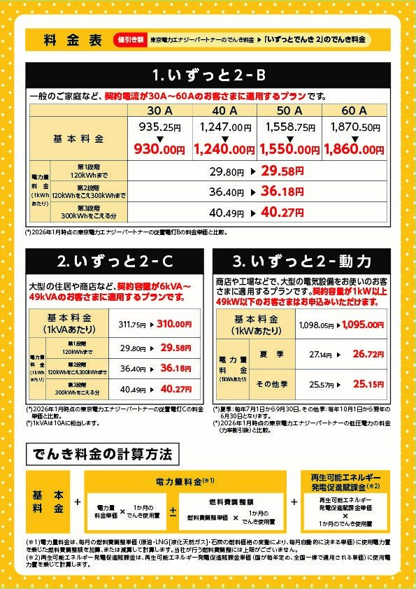 旧一般電気事業者(東京電力エナジーパートナー株式会社)の経過措置料金に比べ、基本料金・電力量料金ともに安価に設定されています 。