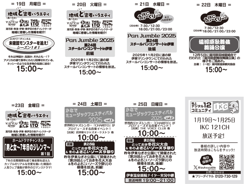 1/19(月)‐1/25(日) の放送はこちら!