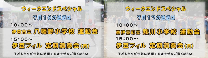 🔹7月23日(土)15:00~八幡野小学校(再放送)24日(日)15:00~熱川小学校(再放送)